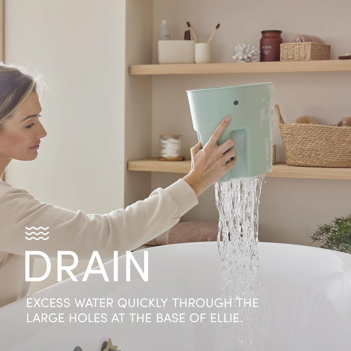 • Easy, Eco-Friendly Cleanup: The Ellie Bath Toy Scoop—made from 98% recycled plastic—lets you scoop, drain, and store bath toys neatly with its built-in drip tray.