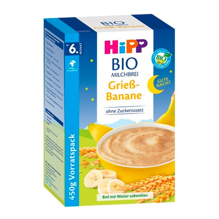 HiPP Organic Good-Night Milk Porridge Semolina Banana (250g) is a premium European organic bedtime cereal designed for babies 6 months and older as part of a mixed weaning diet. This gentle evening porridge combines organic semolina, whole grains, milk, and natural banana flakes to provide a satisfying and easy-to-digest meal before sleep.