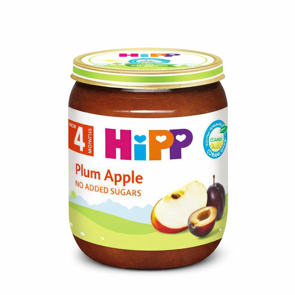 Give your baby a naturally sweet and nutritious start with HiPP Plum Apple Puree. Made with 96% organic fruit, this gentle puree is suitable for babies 4 months and older and offers a smooth texture ideal for early weaning.