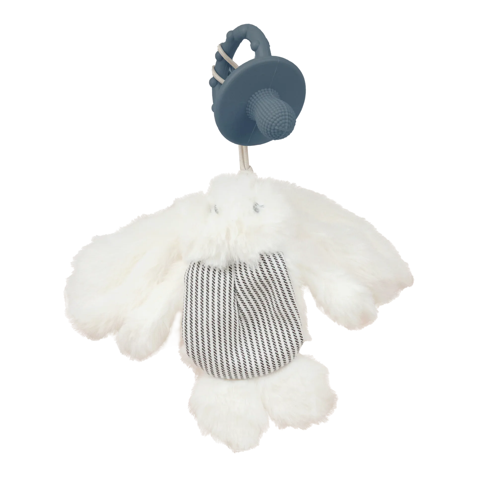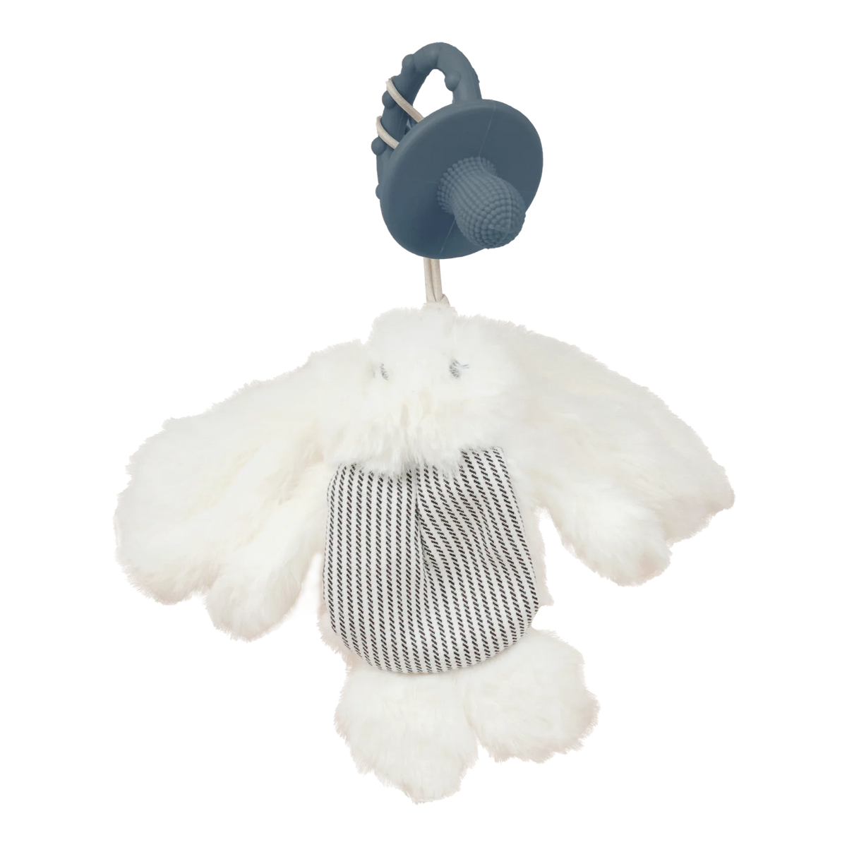 Crafted with premium 100% plush fabric and filled with soft ball fiber, this toy provides gentle comfort while supporting motor skill development and encouraging independence. The detachable teether component is made from 100% food-grade silicone, ensuring safety for little hands and mouths.