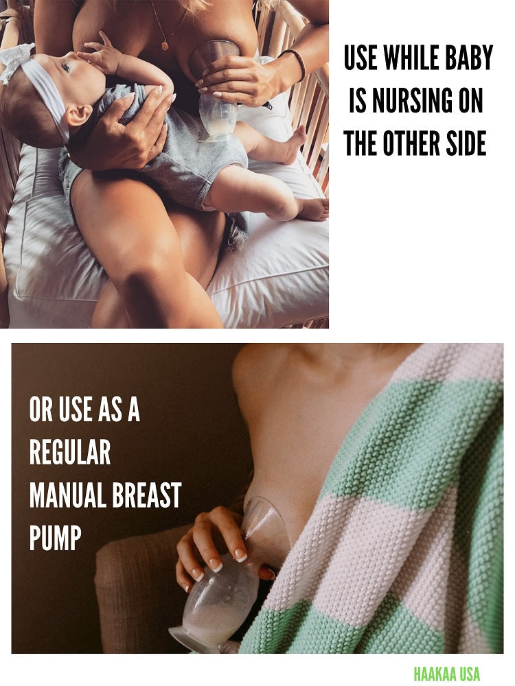 • Includes a silicone milk collector and a manual silicone breast pump