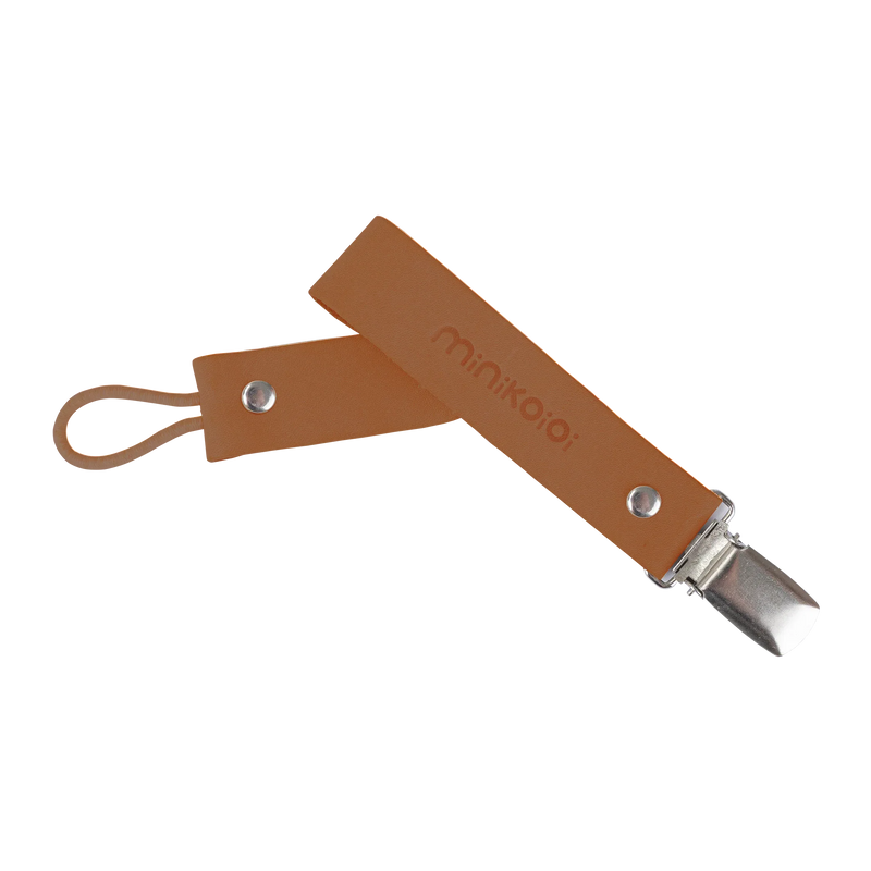 Designed with your baby’s comfort and safety in mind, the specially engineered metal clip holds securely without damaging fabrics. The natural leather finish and herbal dye create a soft, organic look that complements both everyday wear and special outings.