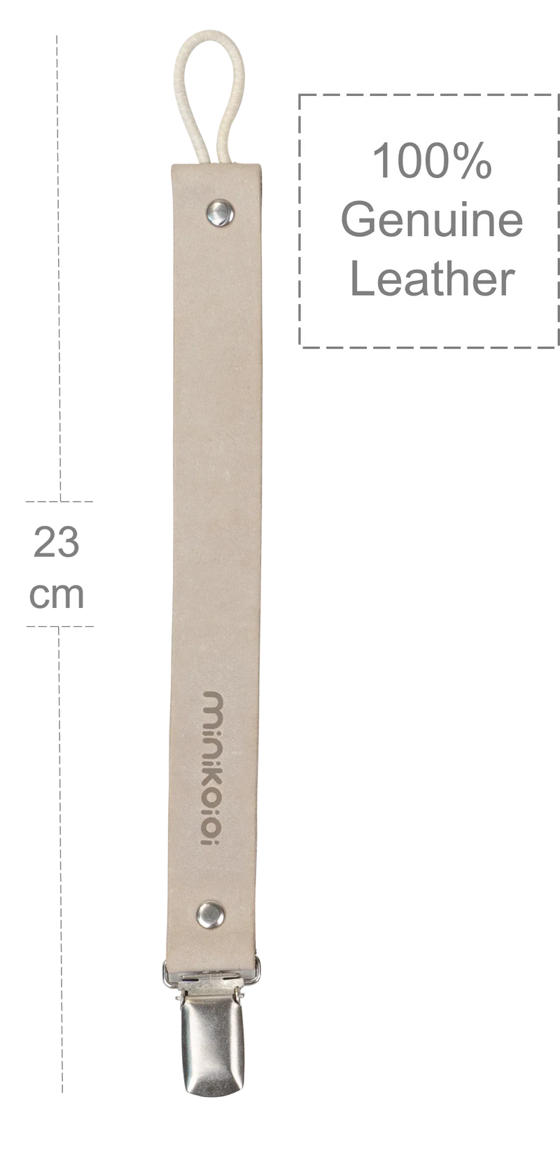 The Pacifier and Teether Holder is thoughtfully designed to keep your baby’s pacifier or teether clean, secure, and always within reach. Made from 100% genuine leather, this elegant accessory combines everyday practicality with timeless style, making it a trusted choice for modern parents.